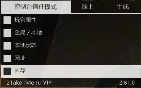注入2Take1成功后并进入线上模式后,打开菜单-