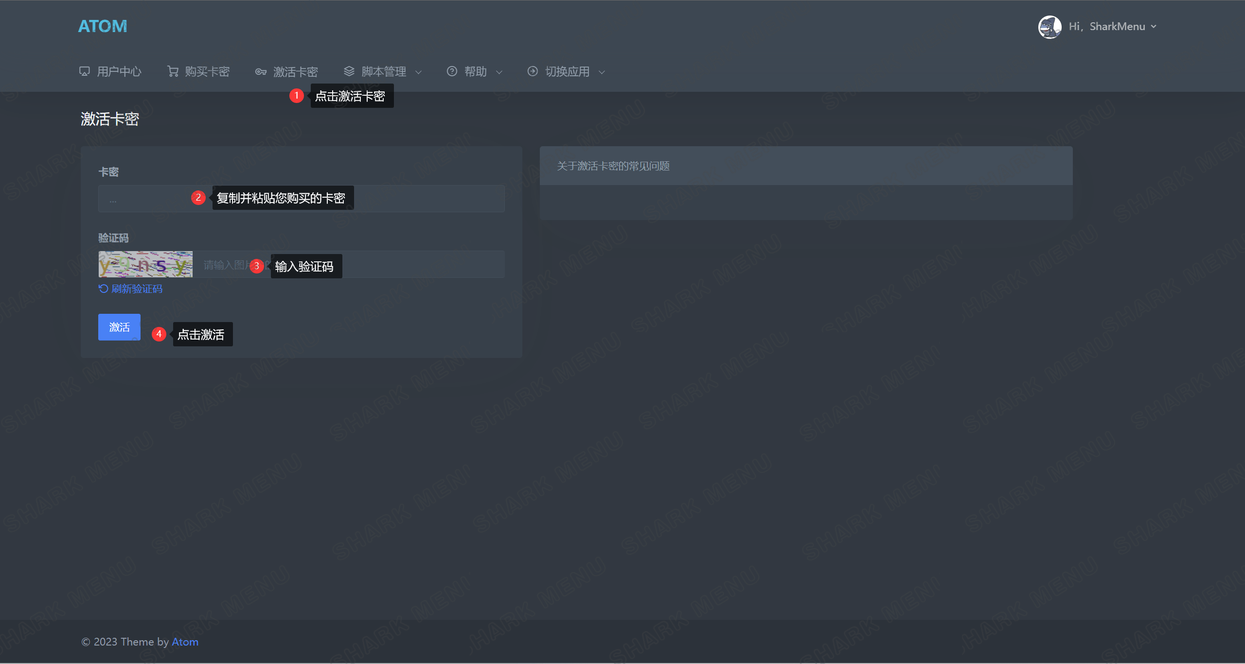 **点击上方**<mark style="color:blue;">**`激活卡密`**</mark>**,然后按照下图操作：**